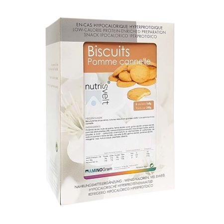 Les Biscuits Pomme Cannelle Nutrisvelt sont des biscuits hypocaloriques et hyperprotéinés. Ils se consomment en en-cas à tout moment de la journée pour éviter les coups de pompe et freiner les envies de grignotage. Très pratiques, ils sont emballés par sachet de 6 biscuits.